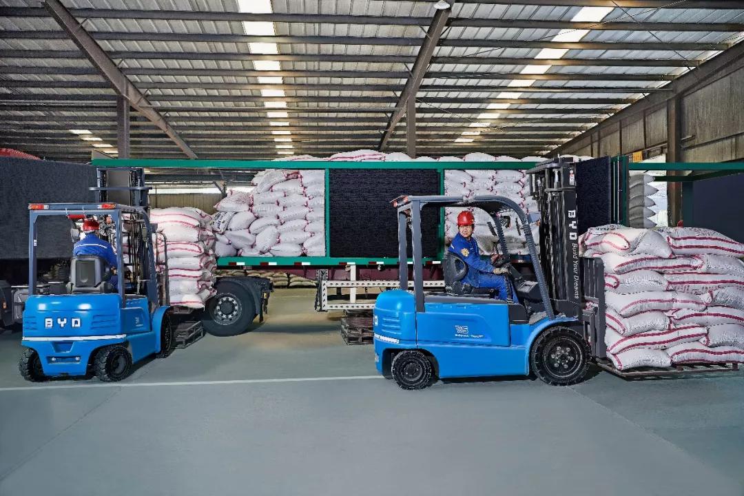 針對(duì)客戶對(duì)動(dòng)力的需求,比亞迪叉車為該基地提供搭載磷酸鐵鋰電池,動(dòng)力強(qiáng)勁的電動(dòng)平衡重式叉車,分別為3T和3.5T;